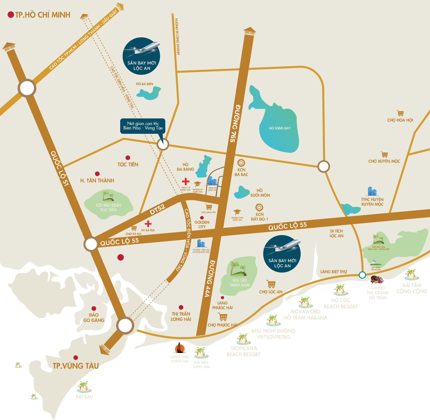 Trung tâm thành phố Bà Rịa, Biển Lộc An - Hồ Tràm